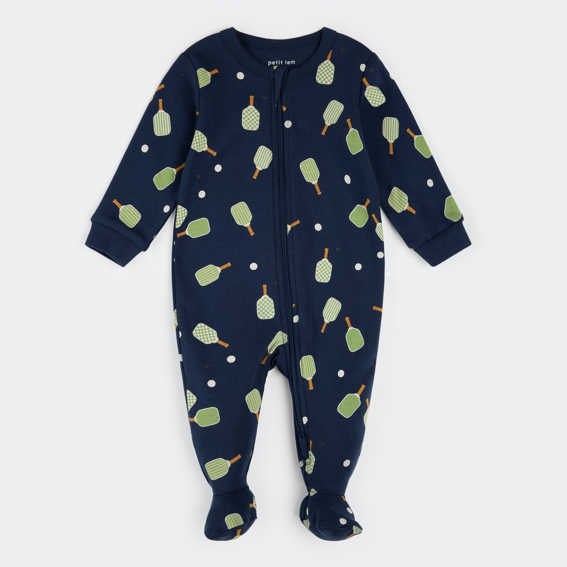 A bedtime win for your tiniest pickleball, this navy sleeper is crafted from soft organically grown cotton with integrated feet and ribbed cuffs to keep them snug as they snooze. With its two-way zip and playful racket print, it’s perfect for inspiring dreams of summer activities.