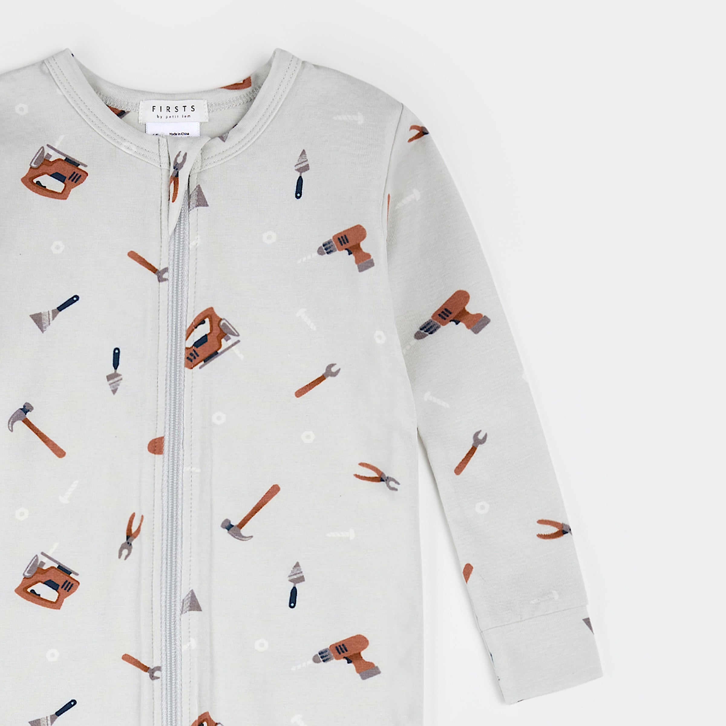Whether he’s making mess or making magic, this Tools printed sleeper is the perfect fit for the job. The cotton-modal jersey sleeper has a tight fit that’s stretchy and snug – like an all-day cuddle from his favourite person. With fold-over feet he can easily transition from a hard day of building blocks to being tucked up for some well-earned sleep. Our two-way zip is the perfect tool for keeping diaper changes quick and easy – meaning he can get back to tinkering or twinkling stars in no time at all.