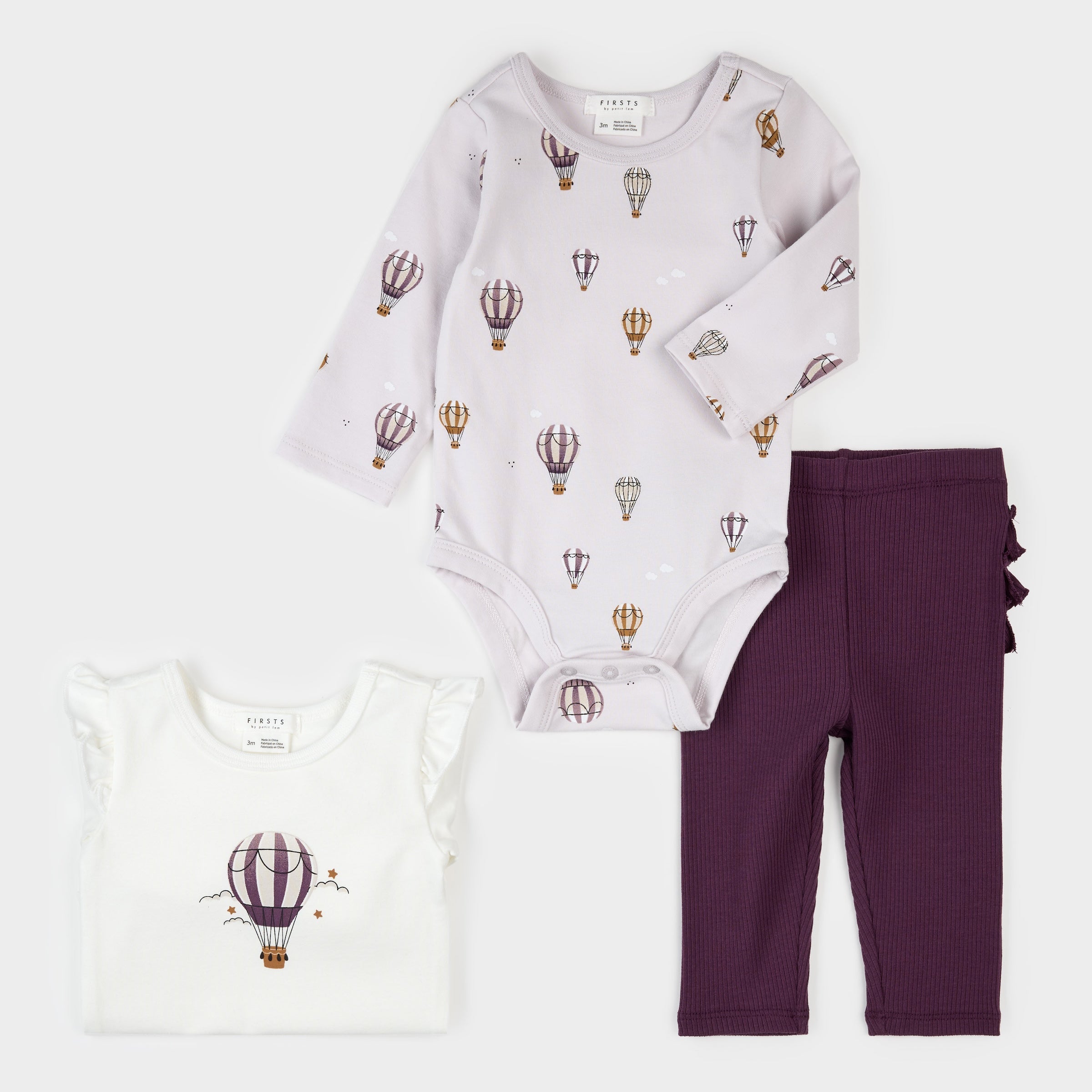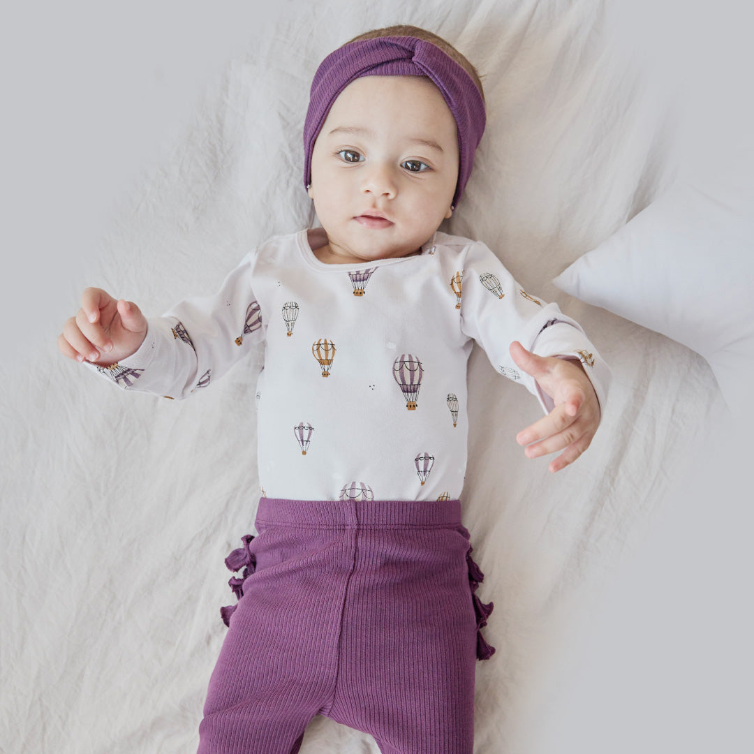 This sweet set features our Hot Air Balloon print and is made from light and airy materials for a comfortable all-day fit. The 3-piece set includes two bodysuits so there’s always a spare to stash in the day bag for emergencies and a pair of ribbed leggings with ruffle detailing. The set is perfect for everyday adventures and playdates at home. *Headband not included