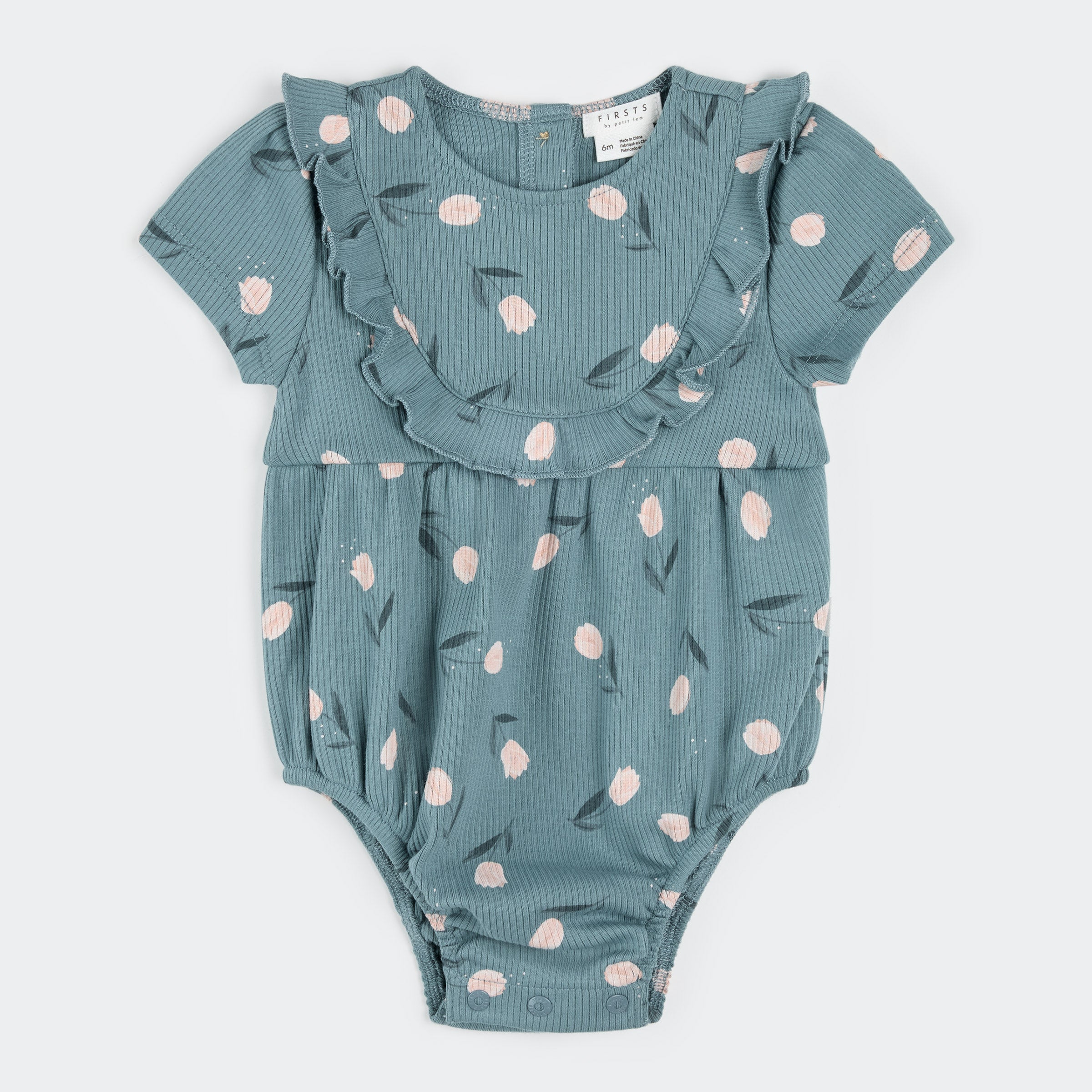 Tulips Print on Sea Blue Bubble Romper