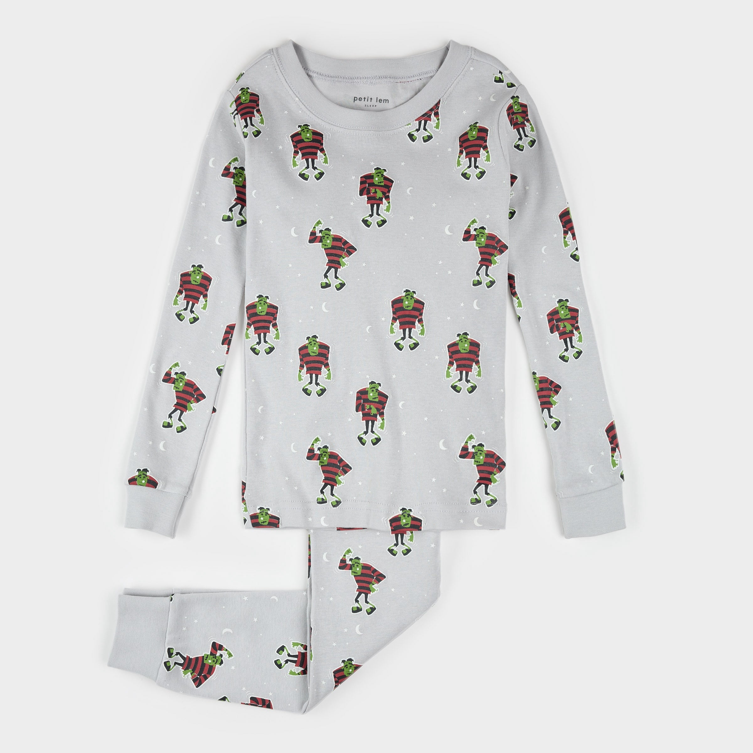 Frankenstein Glow in the Dark Print on Light Grey PJ Set
