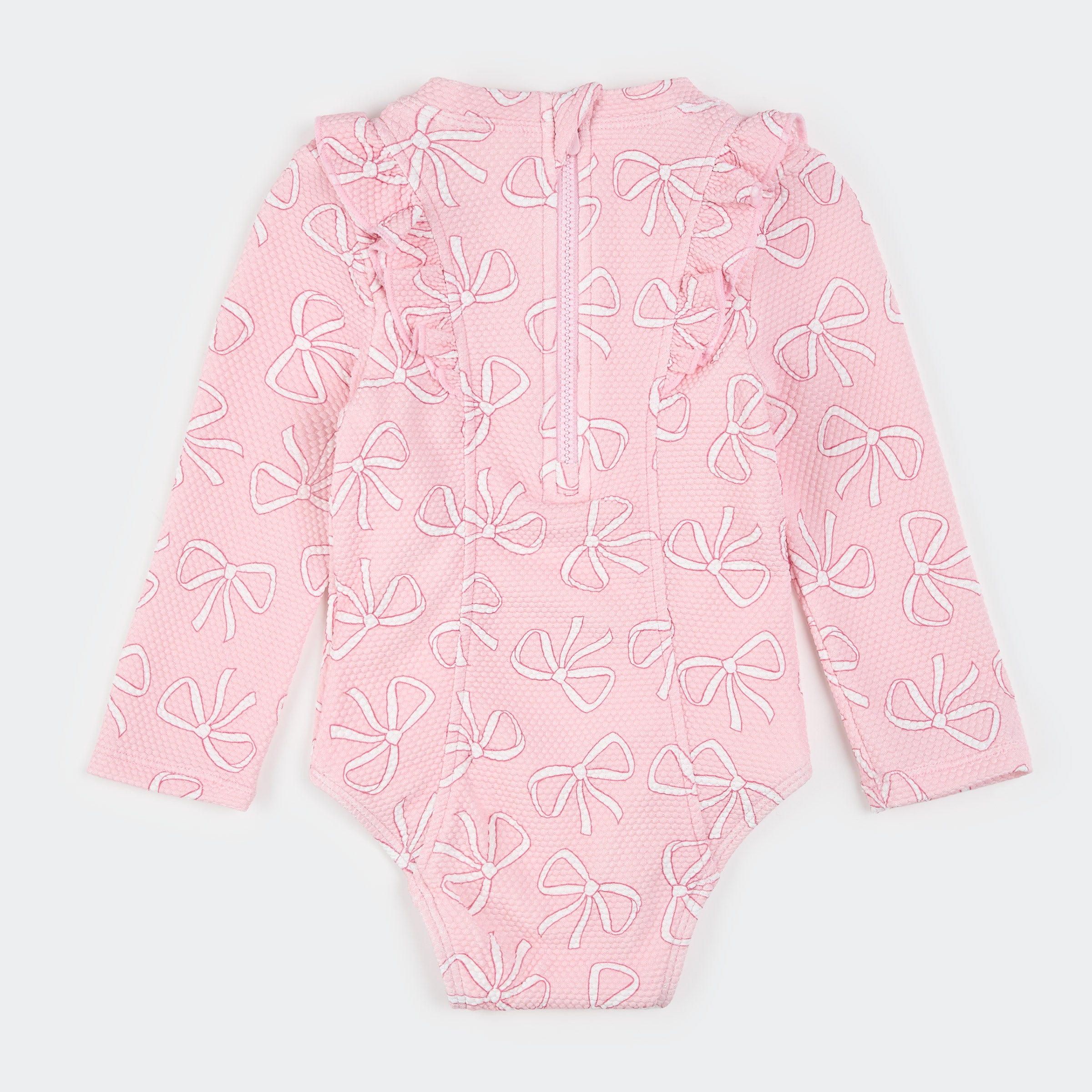 Bows Print on Light Pink Long-Sleeve One-Piece Swimsuit