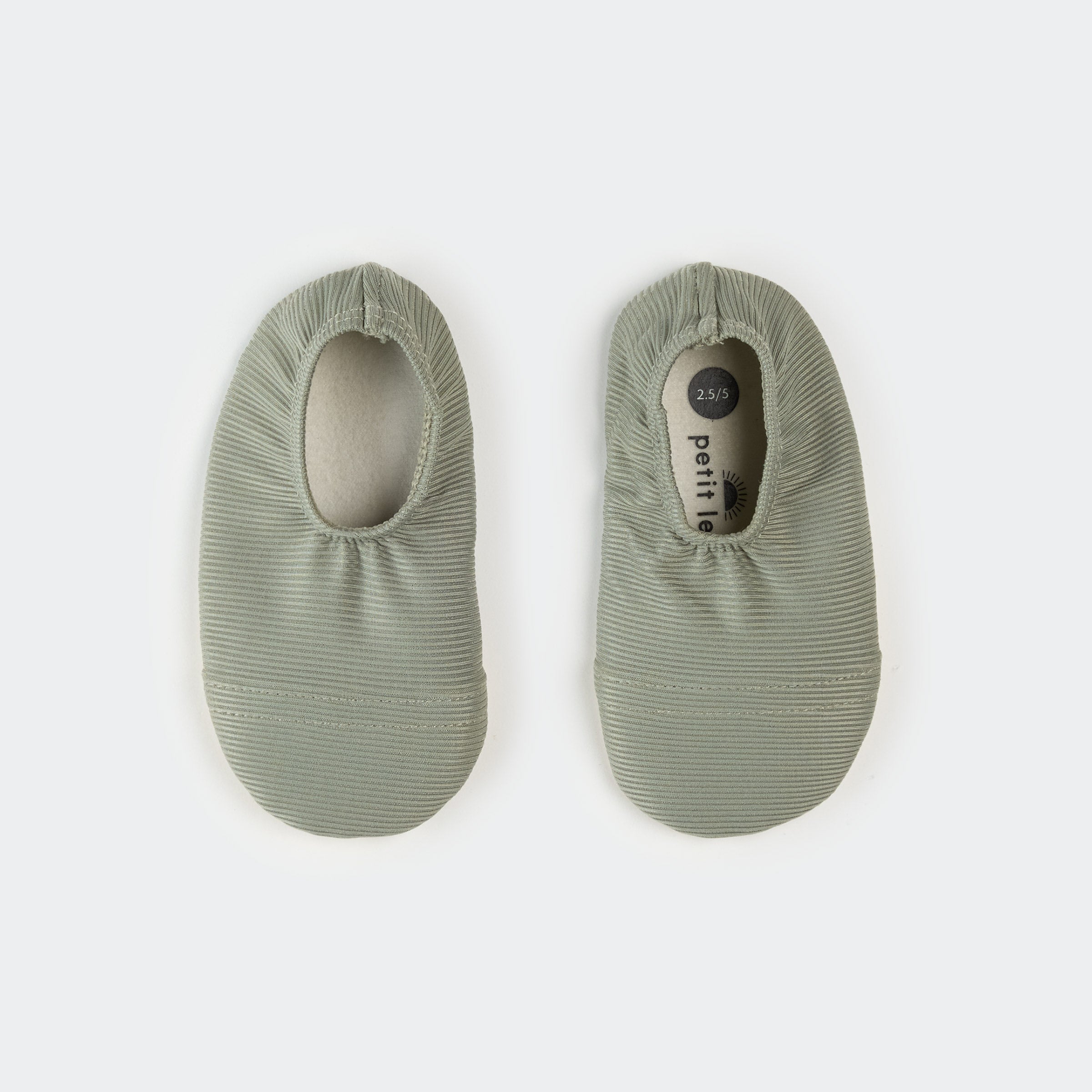 These muted green water shoes coordinate perfectly with swimwear and accessories from the same range: Protecting them from sea, sun and sand from top to toe has never been easier. Made from a flexible, recycled nylon, the shoes offer total comfort while the quick drying, anti-slip design give you less to worry about as they explore the beach. With elastic around the ankles and at the toes, the shoes are easy to slip on and off, with a secure fit once they’re on.