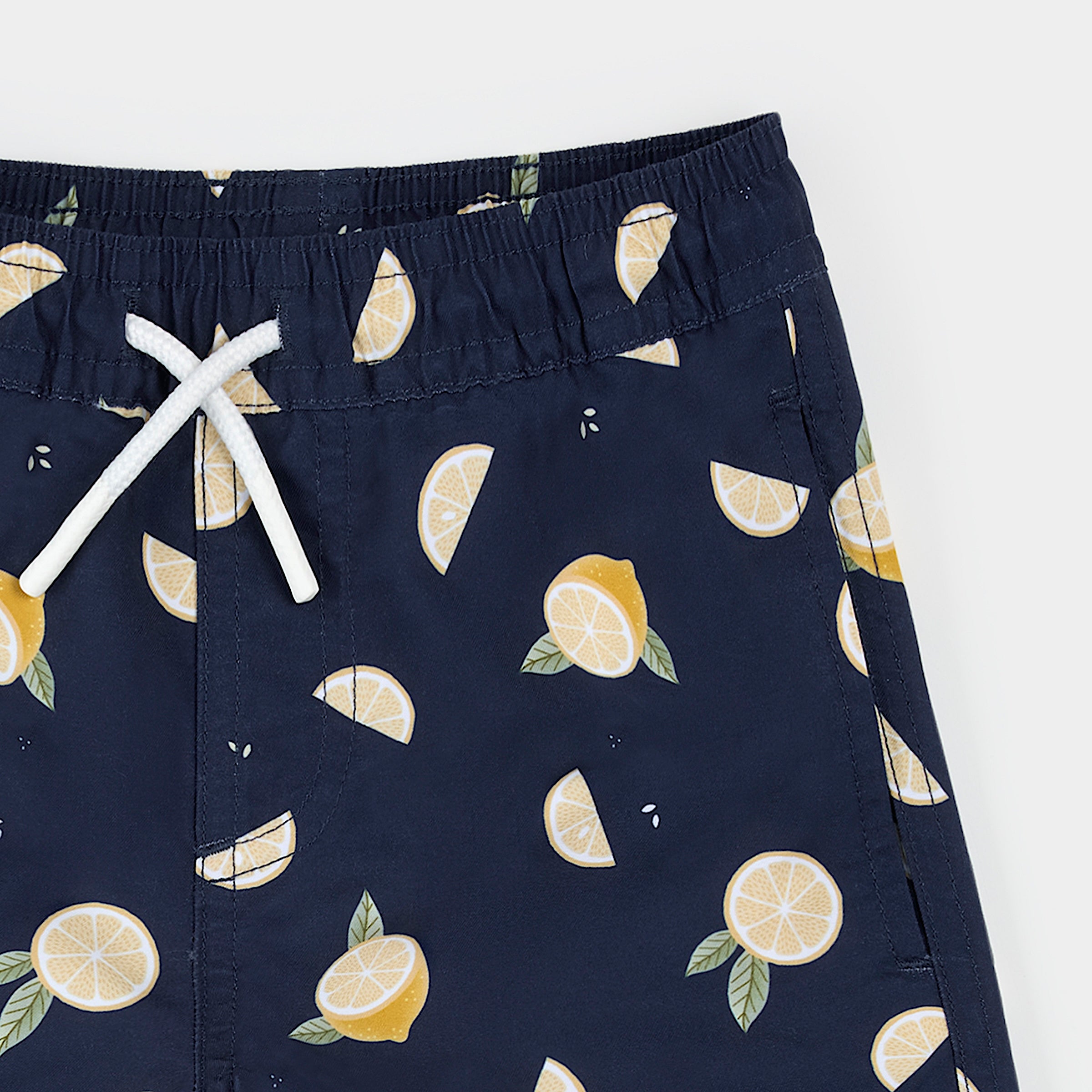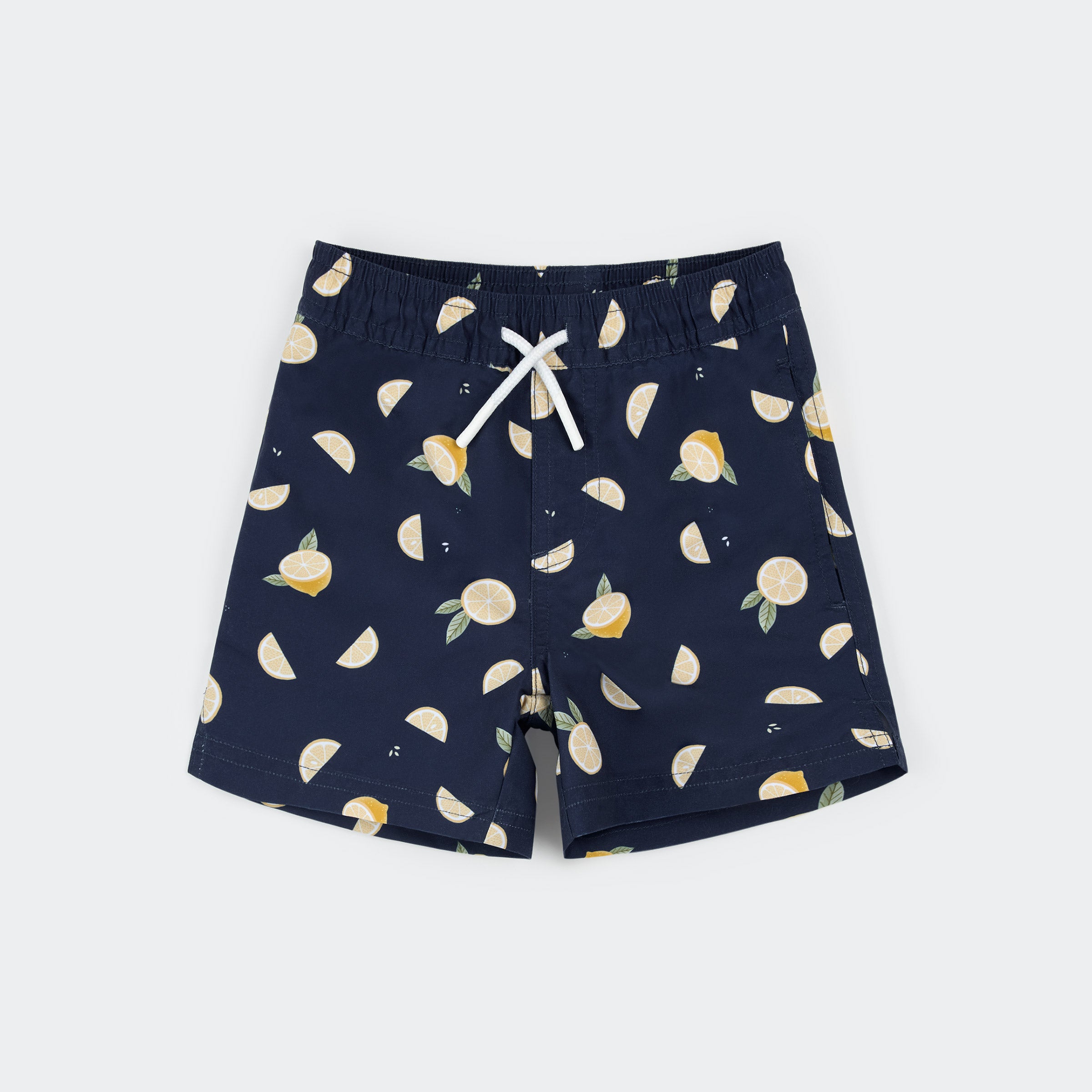 Lemon Print on Navy Swim Trunks