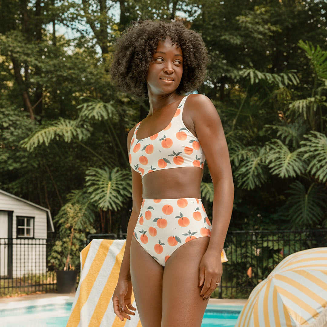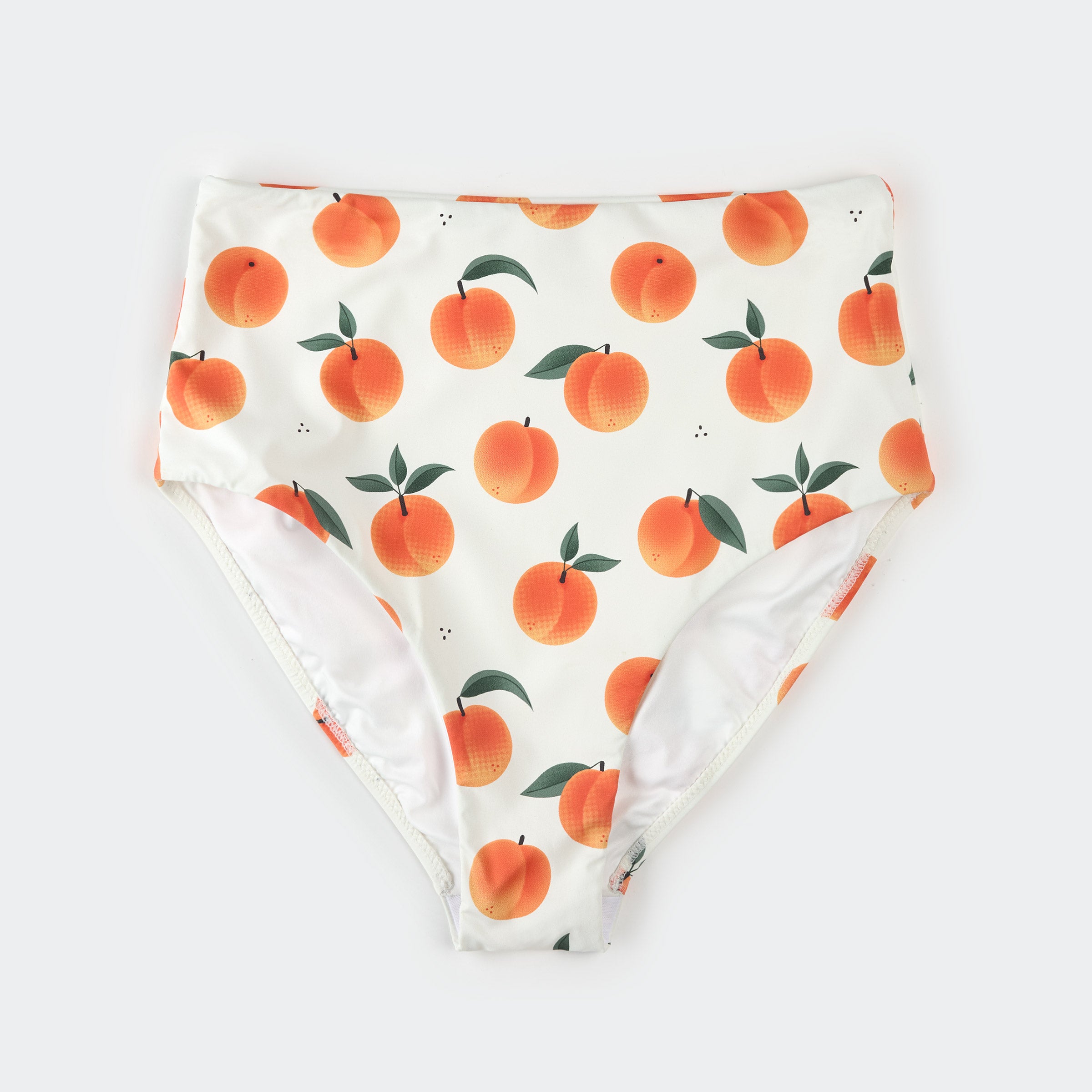 Feel comfortable and confident in these supportive high waisted bikini bottoms. Printed with our Peaches design, the bottoms match the bikini top from the same range as well as pieces for your mini-mes. The high-waisted fit is flattering for all body types, so you can leave your insecurities at home and focus on making memories with your beautiful family.