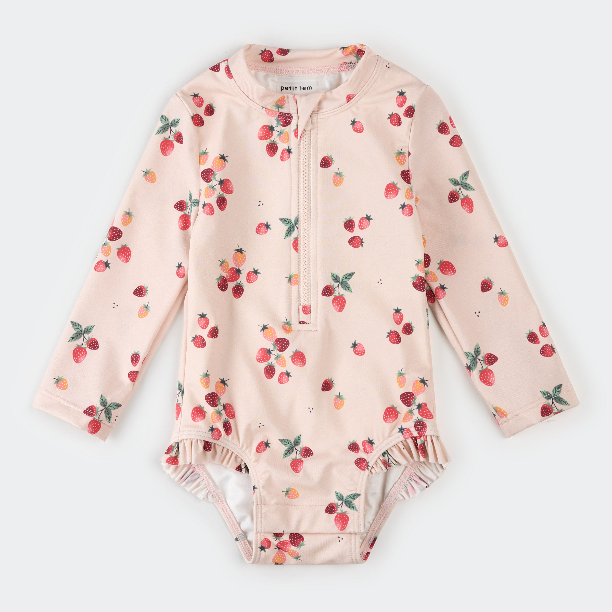 Strawberries on Light Pink Long-Sleeve One-Piece Swimsuit