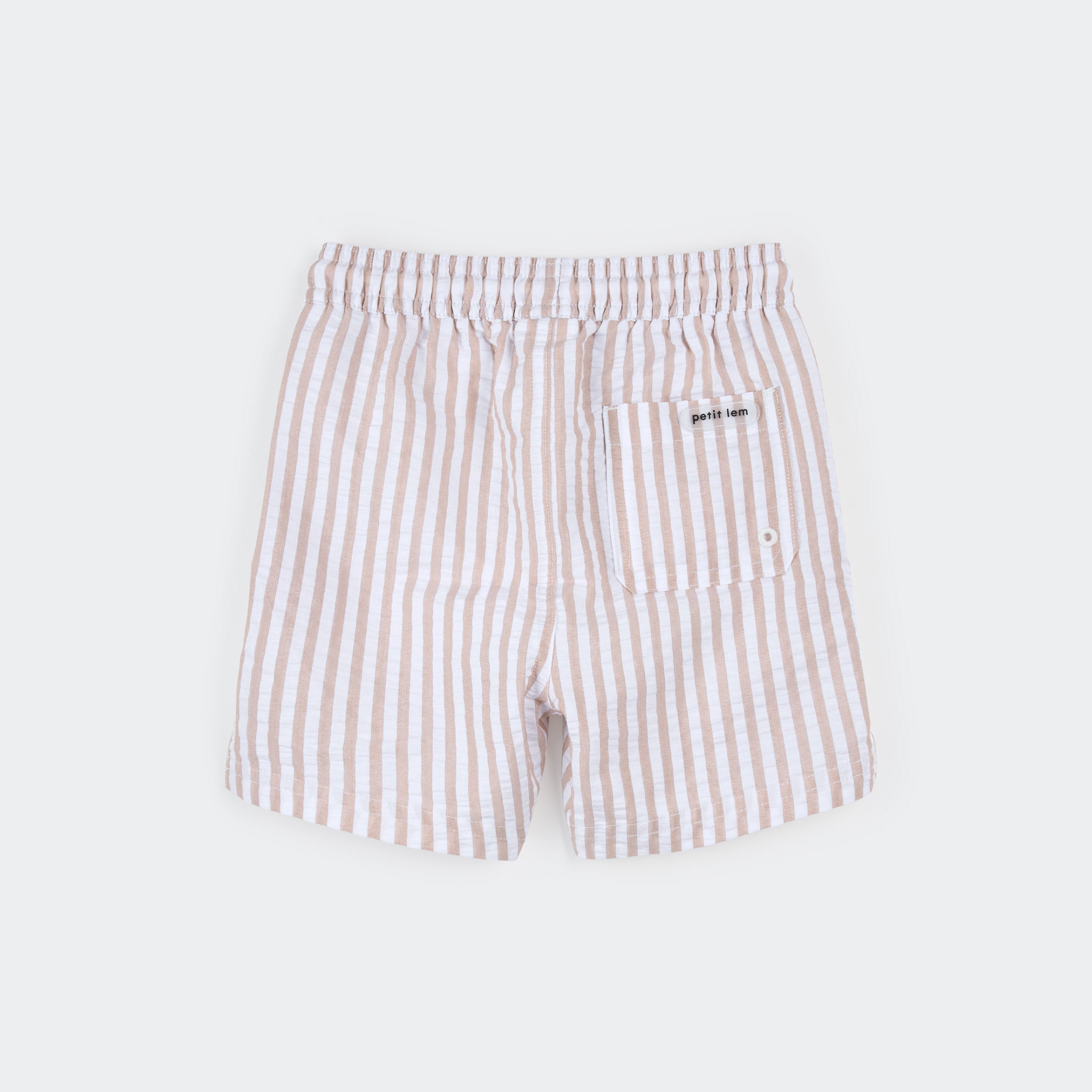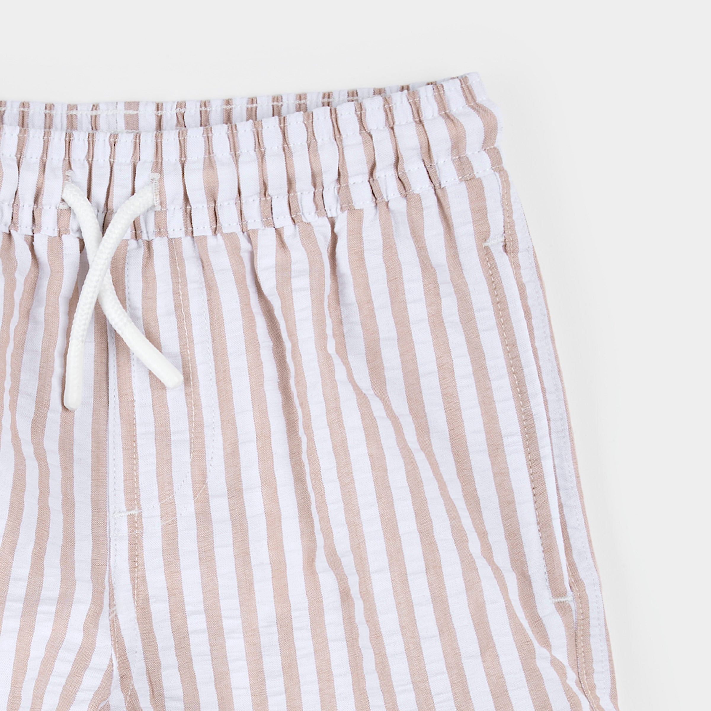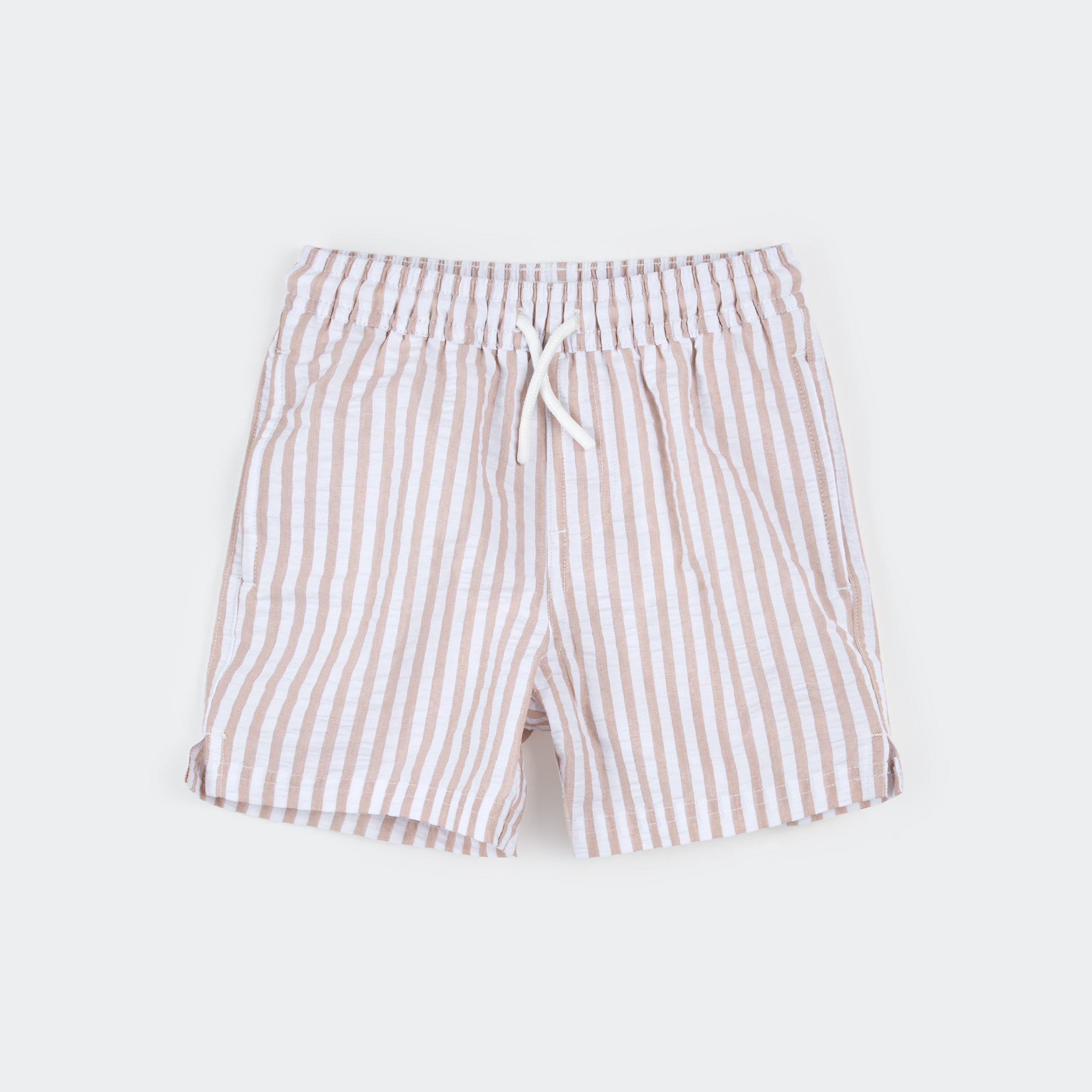 With a timeless, sandy beach feel, these taupe seersucker swim trunks are effortlessly cool and match swimwear available for the whole family. Elastic in the waistband makes them easy to pull up and down for dressing and drying off, while the drawstring tie provides a secure fit for all day play. Pair with one of our textured rash guards for more warmth and protection in the sun or chilly waters.