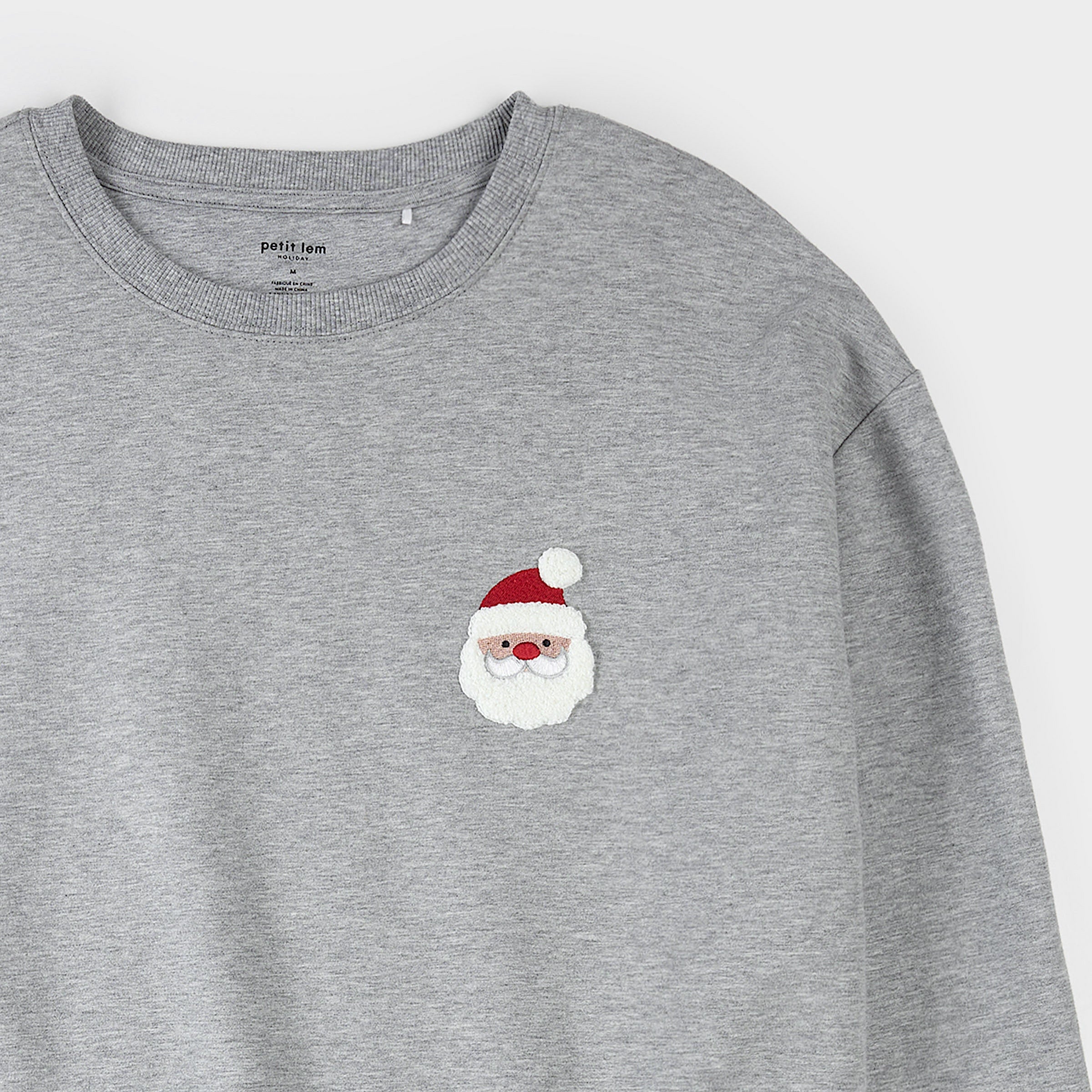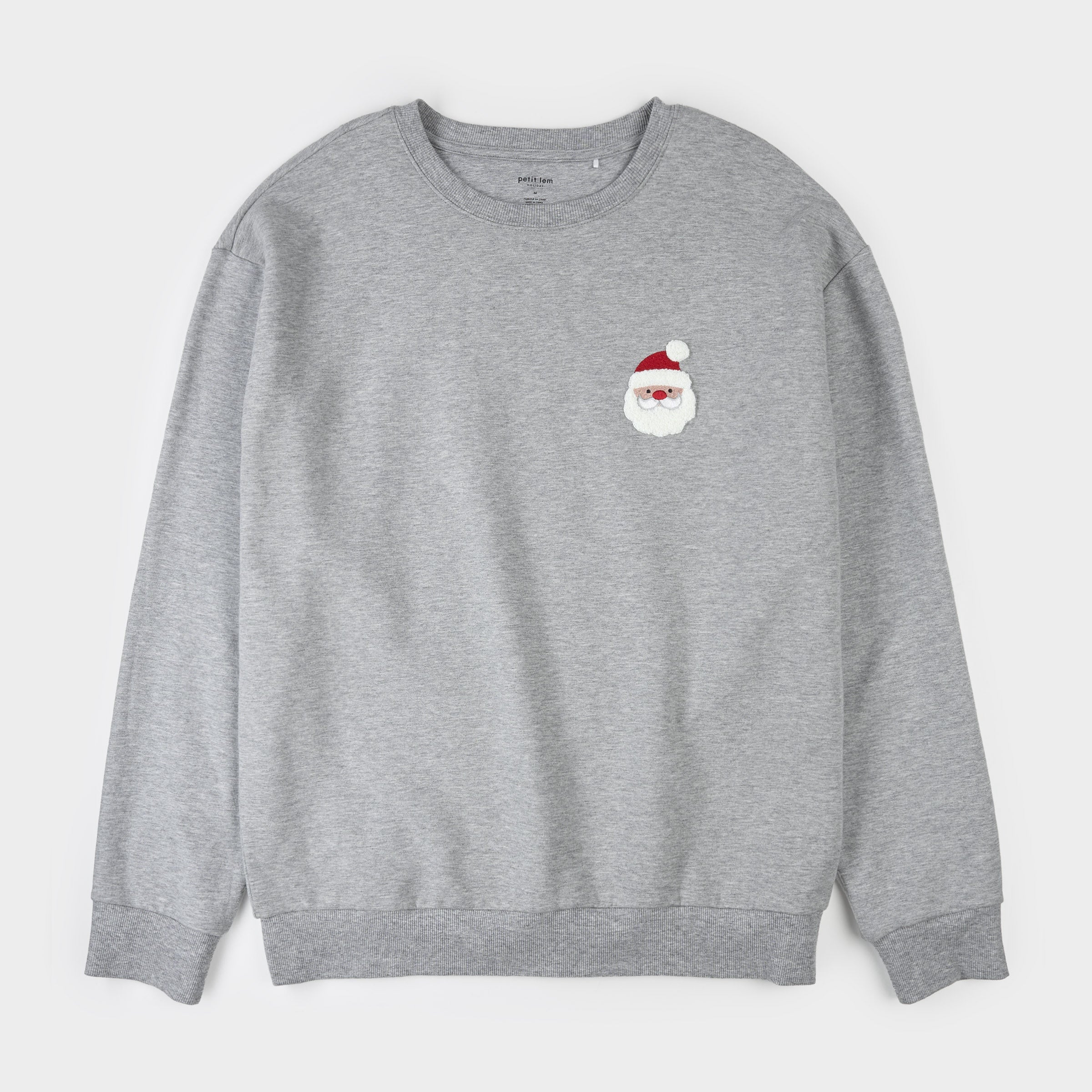 Santa Claus Embroidery on Heather Grey Fleece Men's Sweatshirt