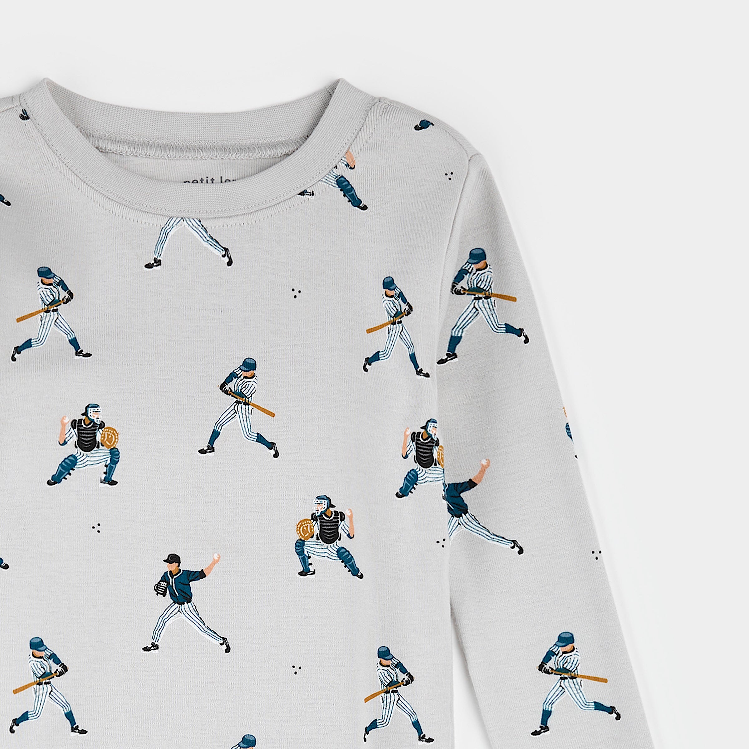 Bring the fun of summer baseball to bedtime with this cotton rib PJ set. With a long-sleeved top and easy pull-on pants, it’s designed to keep kids comfy as they unwind, and there’s a matching sleeper for little brothers to boosts team spirit from day one.
