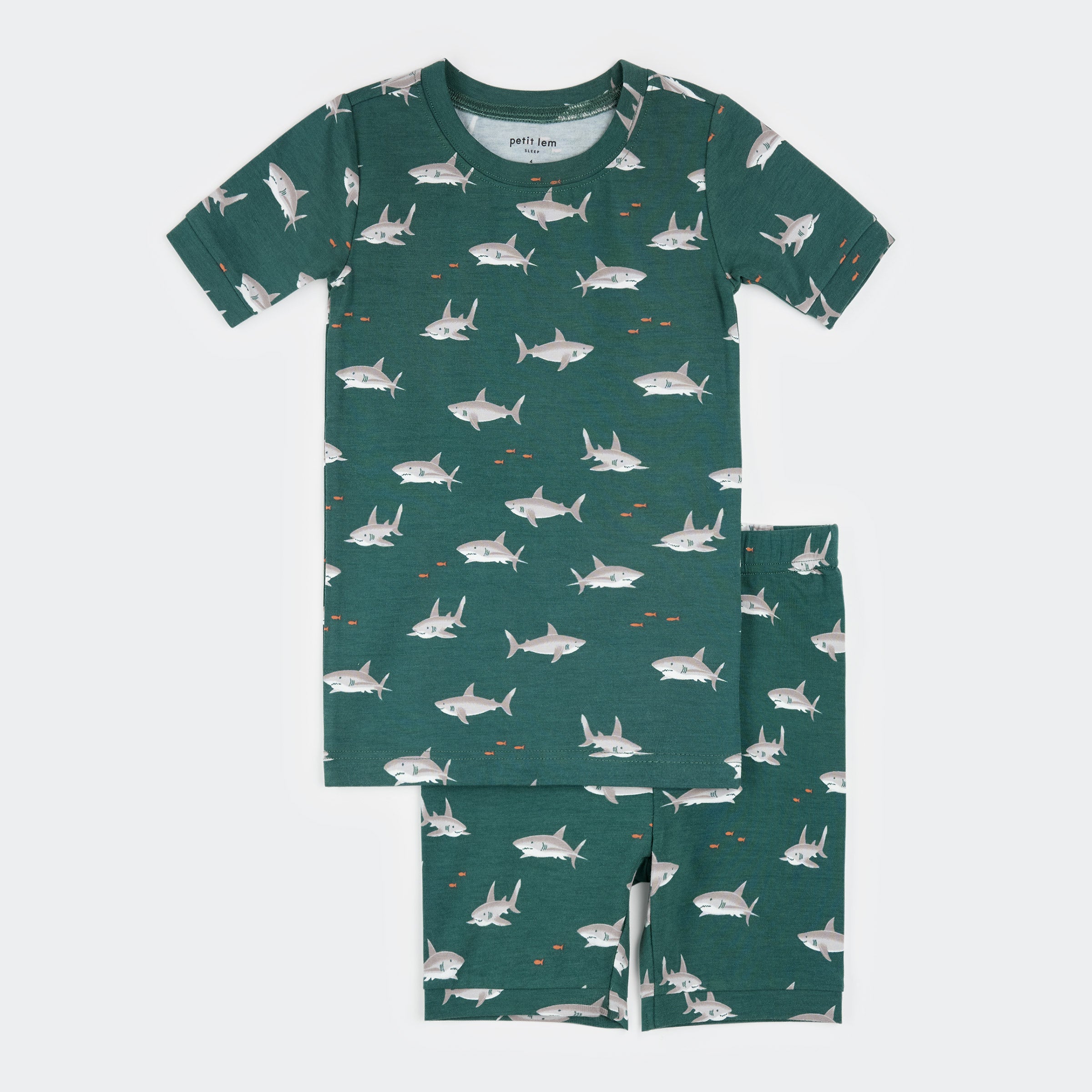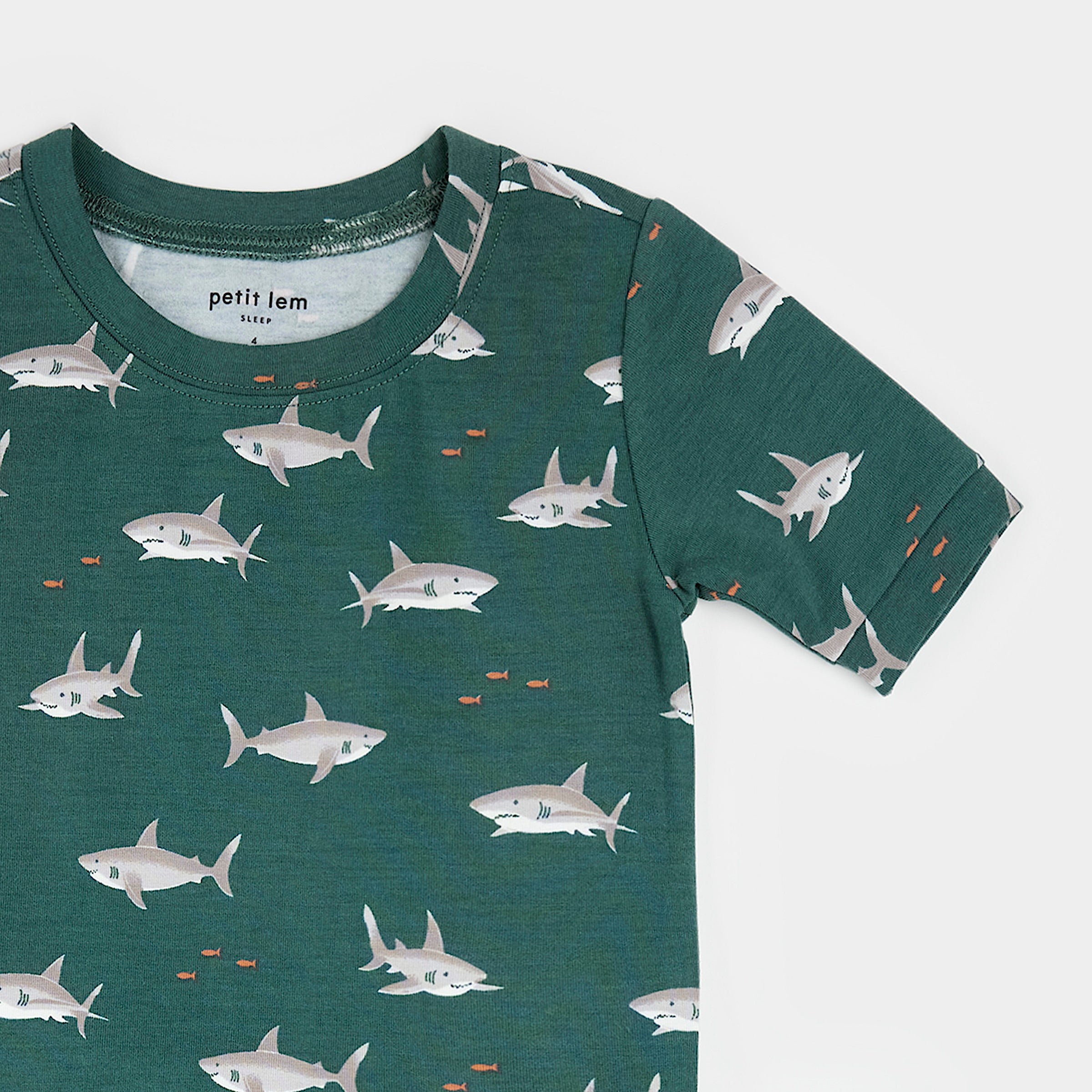 This short PJ set features our friendly Sharks print that’s perfect for little ones who dream of under the sea adventures. Made from organically grown cotton and modal, the set is soft, breathable and made for keeping them cool during the summer.